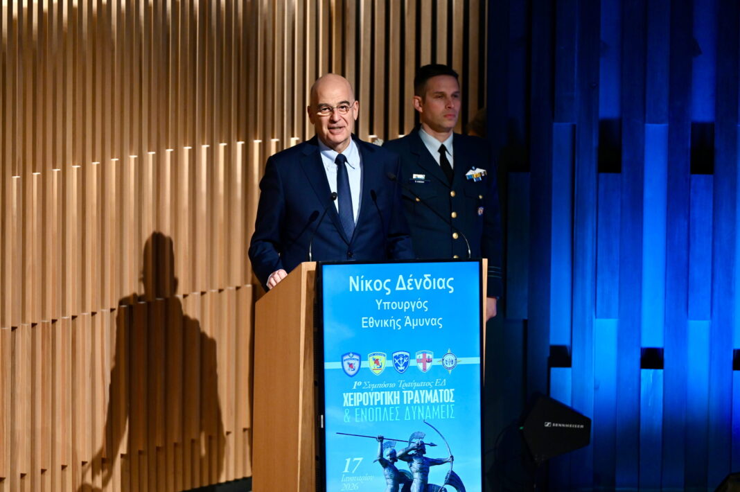 «Επενδύουμε στη γνώση σας, για να αντιμετωπίσουμε την ανάγκη. Την ανάγκη εκείνη την κρίσιμη ώρα που δεν χωρούν αμφιταλαντεύσεις και υπάρχει το επιτακτικό καθήκον να σώσουμε την ανθρώπινη ζωή, να σώσουμε τη ζωή του στελέχους μας, να το επιστρέψουμε υγιές στην οικογένειά του», τόνισε ο υπουργός Εθνικής Άμυνας, Νίκος Δένδιας, σήμερα, Σάββατο 17 Ιανουαρίου 2026, μιλώντας στο 1ο Συμπόσιο Τραύματος των Ενόπλων Δυνάμεων, με θέμα «Χειρουργική Τραύματος και Ένοπλες Δυνάμεις», που διεξήχθη στο Ίδρυμα Βασίλη και Ελίζας Γουλανδρή.