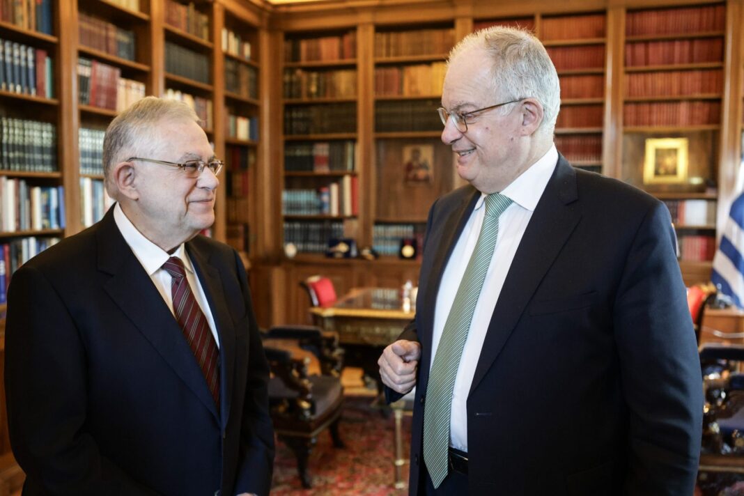 Ο Πρόεδρος της Δημοκρατίας Κωνσταντίνος Τασούλας συναντήθηκε σήμερα με τον πρώην πρωθυπουργό Λουκά Παπαδήμο στο Προεδρικό Μέγαρο.