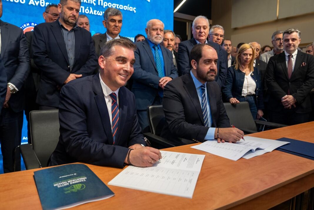 Μνημόνιο Συνεργασίας υπεγράφη σήμερα, Δευτέρα 30 Μαρτίου 2026 μεταξύ του Υπουργείου Κλιματικής Κρίσης και Πολιτικής Προστασίας και του Ελληνικού Δικτύου Ανθεκτικών Πόλεων, στην αίθουσα «Άρης Γαρουφαλής» του Ωδείου Αθηνών. Το Μνημόνιο υπέγραψαν ο Υπουργός Κλιματικής Κρίσης και Πολιτικής Προστασίας, Γιάννης Κεφαλογιάννης, ο Πρόεδρος του Δ.Σ. του Ελληνικού Δικτύου Ανθεκτικών Πόλεων και Δήμαρχος Ελληνικού-Αργυρούπολης, Γιάννης Κωνσταντάτος, καθώς και 150 δήμαρχοι ή εκπρόσωποί τους – μέλη του Δικτύου – από όλη την Ελλάδα.