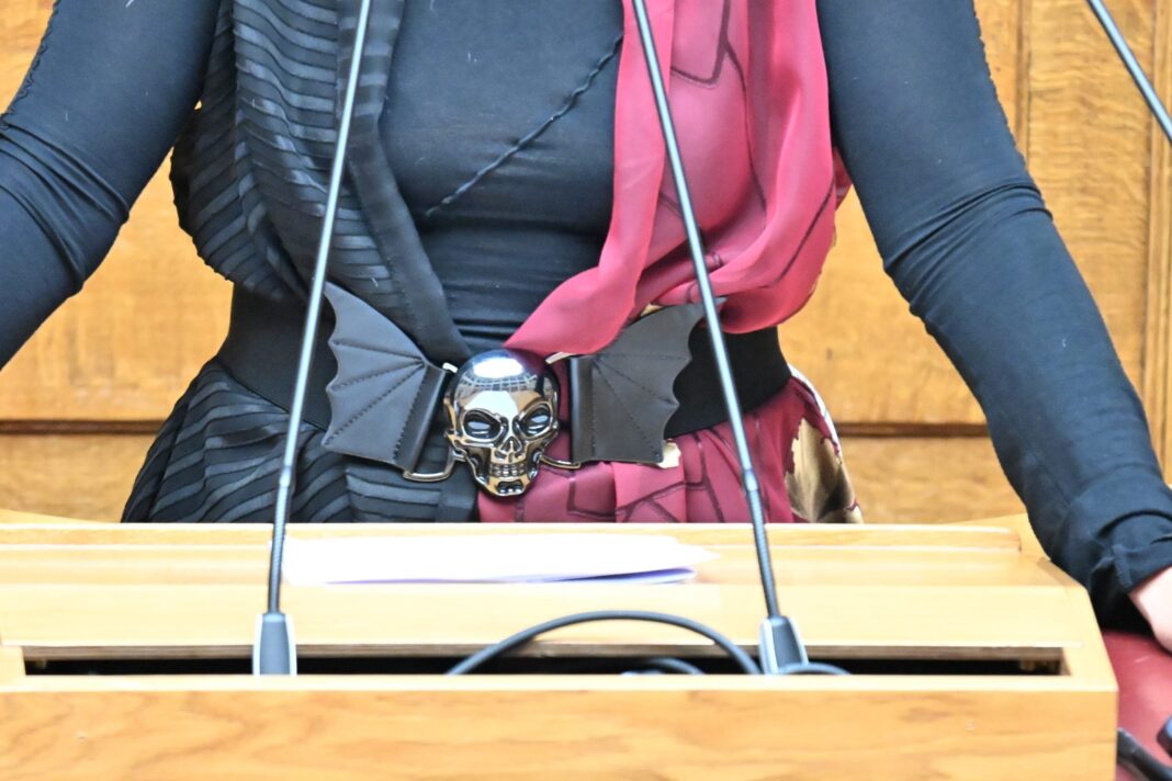 Βουλευτής εμφανίστηκε με ζώνη που είχε νεκροκεφαλή και φτερά νυχτερίδας