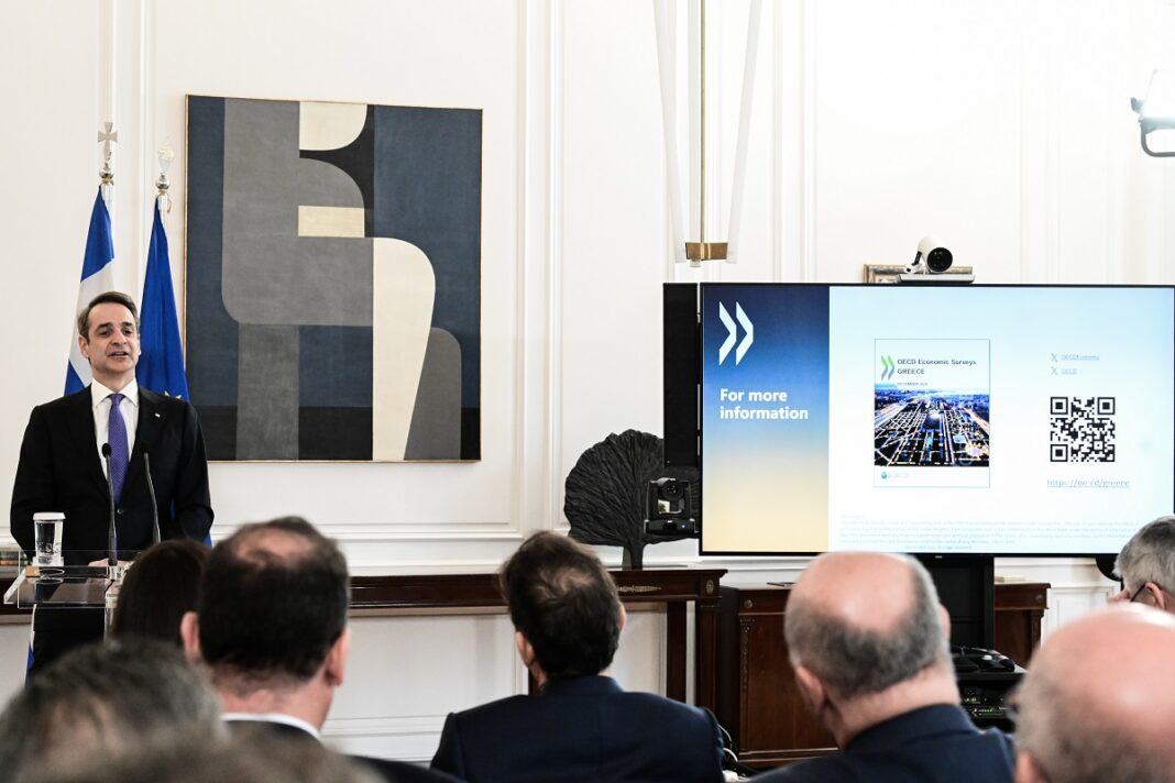 Ο πρωθυπουργός ανέδειξε τα οικονομικά και αναπτυξιακά βήματα που έχουν γίνει στη χώρα μας από το 2019 μέχρι σήμερα στην παρουσίαση της οικονομικής επισκόπησης του ΟΟΣΑ για την Ελλάδα, που πραγματοποιήθηκε στο Μέγαρο Μαξίμου, παρουσία του γενικού γραμματέα Ματίας Νόρμαν. Ο κ. Μητσοτάκης ανέλυσε το στοίχημα στον κυβερνητικό οδικό χάρτη της επόμενης τριετίας, τη σύγκλιση δηλαδή της χώρας με την Ευρωπαϊκή Ένωση σε επίπεδο μισθών αλλά και επιπέδου ζωής.