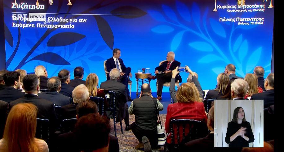 Συζήτηση του πρωθυπουργού Κυριάκου Μητσοτάκη με τον Γ. Πρετεντέρη για την ελληνική εξωτερική πολιτική στα 50 χρόνια από τη μεταπολίτευση.