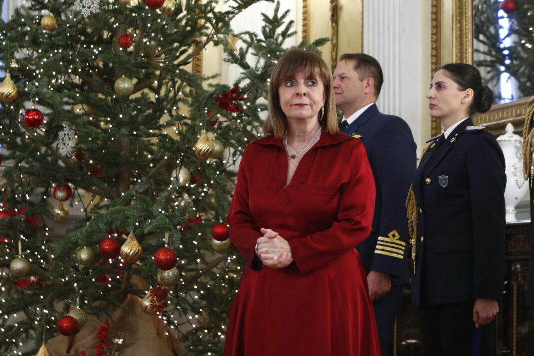 Σαφές κοινωνικό μήνυμα έστειλε η Πρόεδρος της Δημοκρατίας, Κατερίνα Σακελλαροπούλου, υποδεχόμενη εδώ στο Προεδρικό Μέγαρο μικρά παιδιά, άτομα μεγαλύτερης ηλικίας αλλά και συλλόγους διατήρησης της παράδοσης. Η μπάντα των Ενόπλων Δυνάμεων παραδοσιακά και η Προεδρική Φρουρά έψαλαν για αρχή τα κάλαντα της Πρωτοχρονιάς αλλά και τα κάλαντα Χίου και Σίφνου στην Πρόεδρο της Δημοκρατίας και ακολούθησαν διαδοχικά Σύλλογοι Μέριμνας Νέων, Πνευματικά Ιδρύματα και άλλοι φορείς.