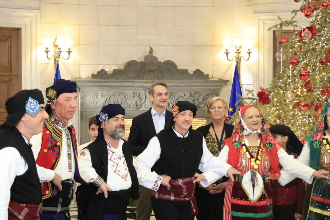 Ευχές για καλή και δημιουργική χρονιά με υγεία και ευημερία, αλλά και δώρα αντάλλαξε ο πρωθυπουργός Κυριάκος Μητσοτάκης με τους αθλητές των Special Olympics Hellas, τις συνοδούς τους, καθώς και τα μέλη της Πανθρακικής Ομοσπονδίας Νότιας Ελλάδας, οι οποίοι του είπαν τα Πρωτοχρονιάτικα κάλαντα στο Μέγαρο Μαξίμου.