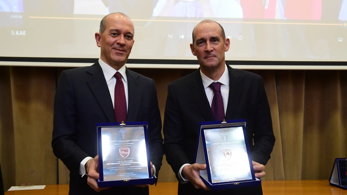 Με απόφαση του Διοικητικού Συμβουλίου του Ε.Β.Ε.Π, πρόεδρος του οποίου είναι ο κ.Βασίλης Κορκίδης, οι ισχυροί άνδρες της ομάδας μας ανακηρύχθηκαν επίτιμα μέλη του Εμπορικού και Βιομηχανικού Επιμελητηρίου Πειραιά. Επίσης, παρέλαβαν τιμητικές πλακέτες δια χειρός του Βασίλη Κορκίδη και του προέδρου του Εμπορικού και Βιομηχανικού Επιμελητηρίου Αθηνών, Γιάννη Μπρατάκου.