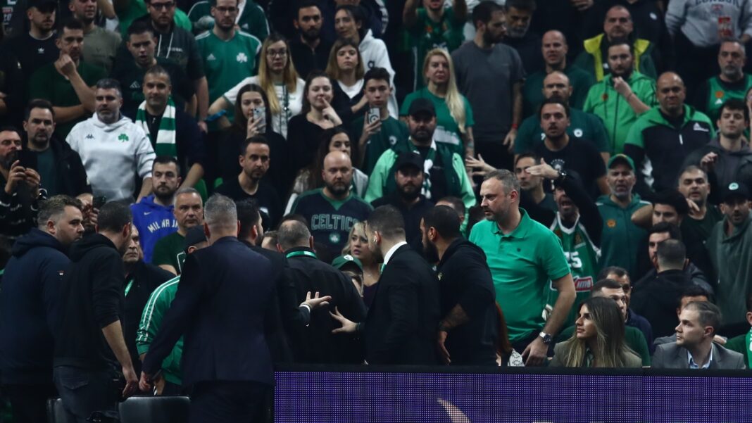 Δύο φίλαθλοι της Ζαλγκίρις που κάθονταν δίπλα από τον πάγκο της ομάδας τους προκαλούσαν συνεχώς με άσεμνες χειρονομίες και βρισιές προς τους φίλους του Παναθηναϊκού. Αυτό προκάλεσε την αντίδραση των οπαδών του Παναθηναϊκού και προς στιγμήν, πήγε να δημιουργηθεί σύρραξη.