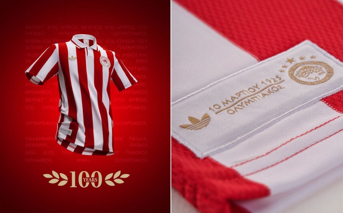 Ο Ολυμπιακός αποκαλύπτει συλλεκτική φανέλα για τα 100 χρόνια του, εμπνευσμένη από την ιστορία και τις εμβληματικές εμφανίσεις του.