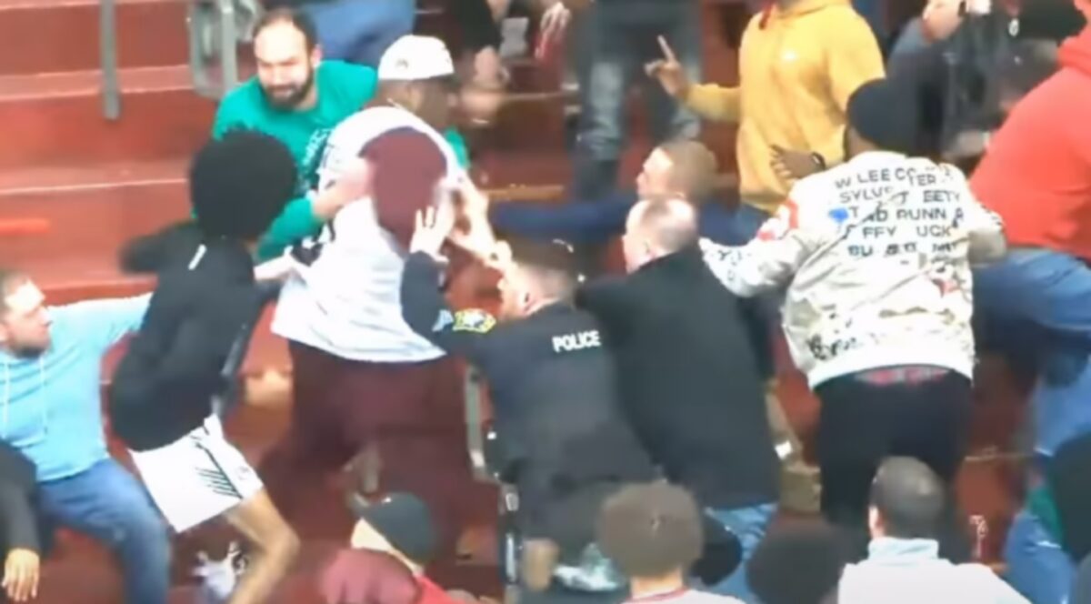 Η κατάσταση ξέφυγε όταν ένας φίλαθλος επιτέθηκε σε οπαδούς της αντίπαλης ομάδας, προκαλώντας γενικευμένη σύρραξη μεταξύ παικτών και φιλάθλων.