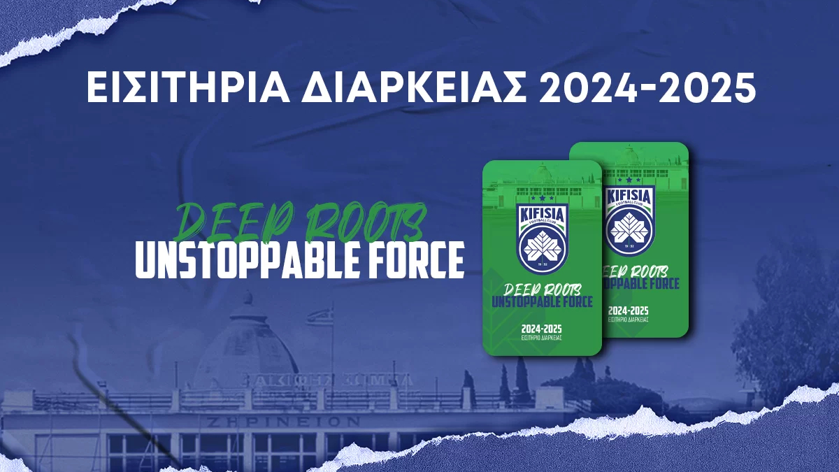 Με βαθιές και γερές ρίζες στην αθλητική ζωή της πόλης και με μότο το “Deep Roots” η Κηφισιά σε καλεί να γίνεις ένα με την ομάδα μας, σε μια πολύ απαιτητική σεζόν γεμάτη προσδοκίες και φιλοδοξίες, που ως μεγάλο στόχο έχει την επιστροφή στη Super League 1.
