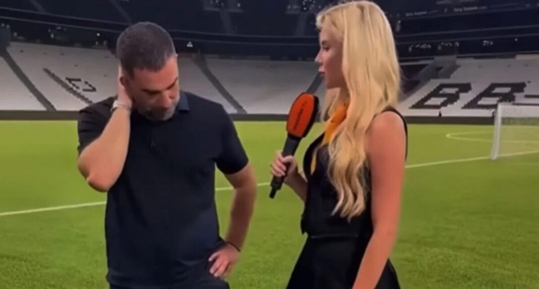 Ο προπονητής Αρντά Τουράν αποφεύγει να κοιτάξει τη δημοσιογράφο της Σαχτάρ Ντόνετσκ, με τη σύζυγό του να ζηλεύει την εμφάνισή της