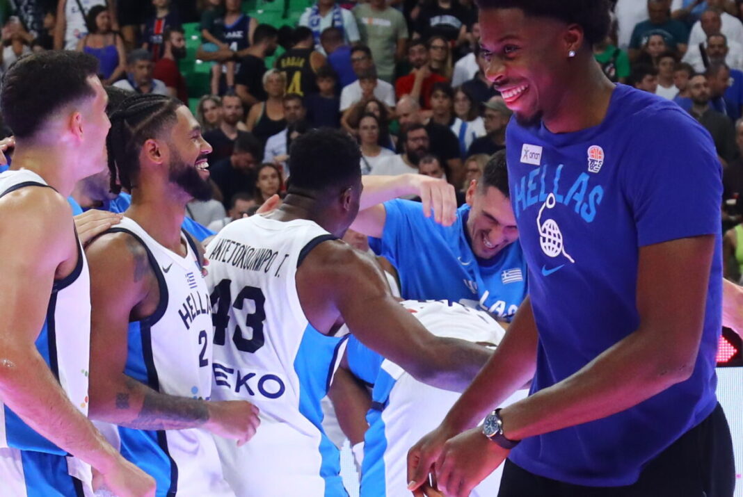 Γιαννούλης Λαρεντζάκης και Γιάννης Αντετοκούνμπο ανταλλάσσουν φιλικές σφαλιάρες μετά τη νίκη της Εθνικής μπάσκετ επί της Λετονίας