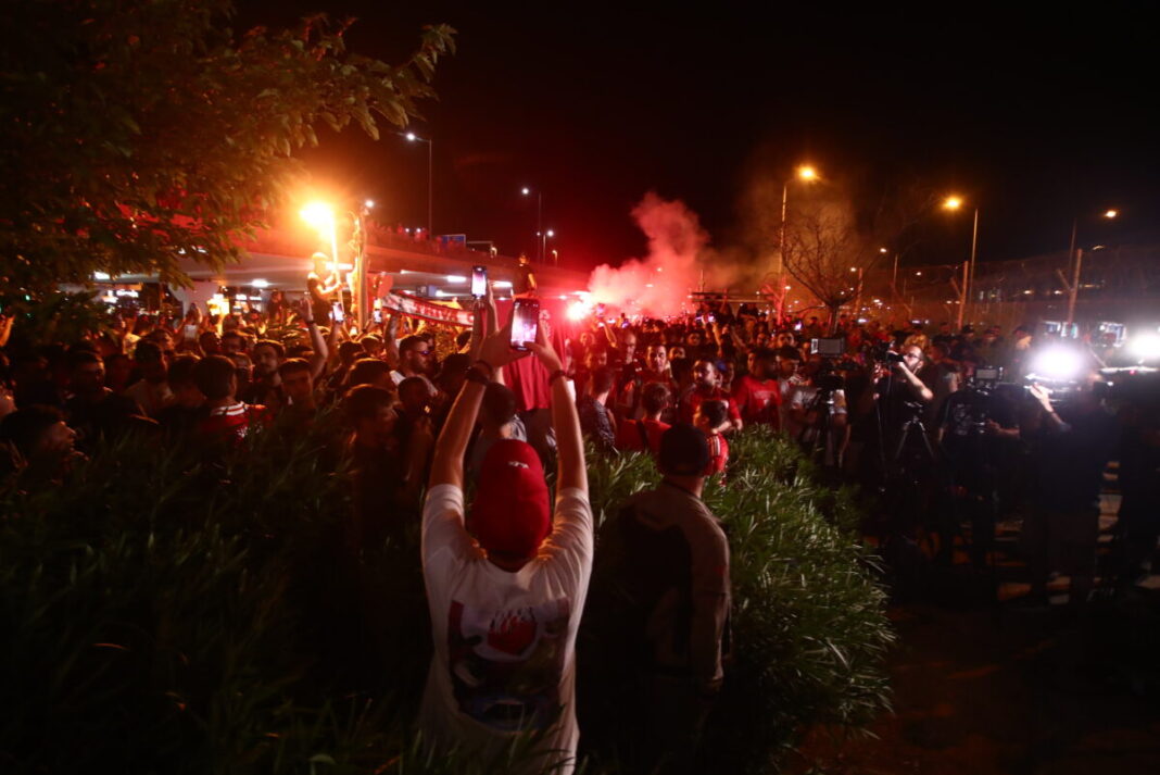 Βενιζέλος» για να τον υποδεχθούν με συνθήματα και καπνογόνα, δημιουργώντας μια ατμόσφαιρα που θύμιζε γήπεδο.