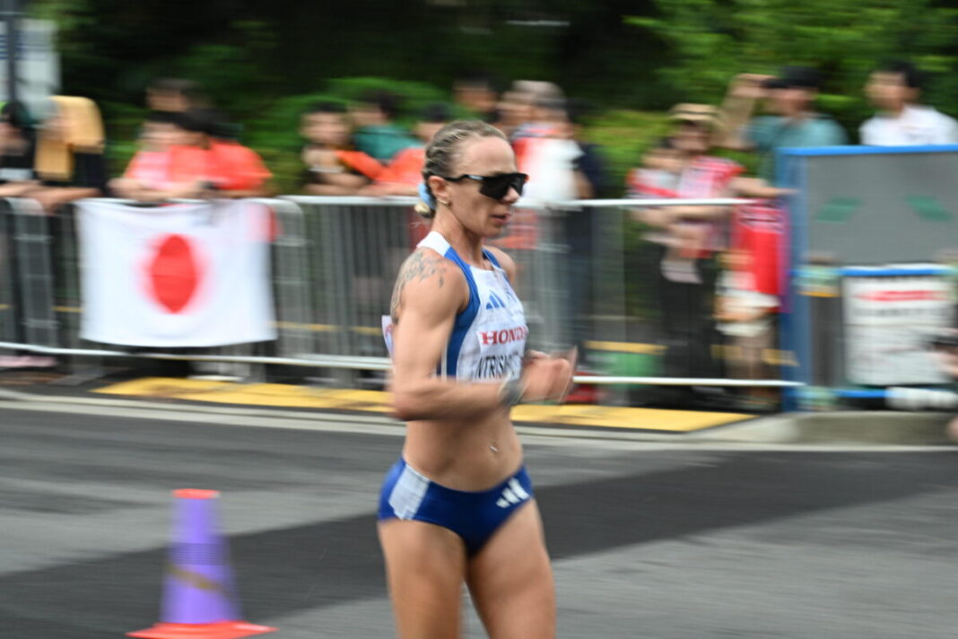 Η 23χρονη αθλήτρια ήταν το πρόσωπο της ελληνικής ομάδας στην έναρξη του 20ου Παγκοσμίου πρωταθλήματος στο Τόκιο, αφού κατέλαβε την 18η θέση στα 35χλμ. βάδην με 2.59.59. Η αθλήτρια βελτίωσε το φετινό της ρεκόρ σε μια κούρσα σωστής κατανομής δυνάμεων, ψυχραιμίας και ισορροπίας από μέρους της. Η αθλήτρια του Γρηγόρη Κοντού επέλεξε στην αρχή να μείνει πίσω, ωστόσο είδε πως έχει δυνάμεις και σταδιακά, δίχως να πάρει μεγάλο ρίσκο, ανέβασε ρυθμό και κέρδισε πολλές θέσεις.