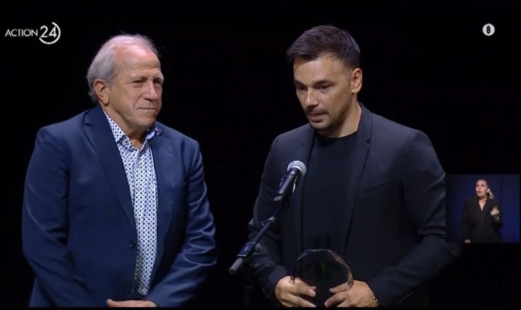 Τρίτος στη σκηνή ανέβηκε ο Κάρλος Ζέκα, με τον Γρηγόρη Παπαβασιλείου (επί χρόνια team manager του Παναθηναϊκού) να του δίνει την τιμητική πλακέτα του ΠΣΑΠΠ.
