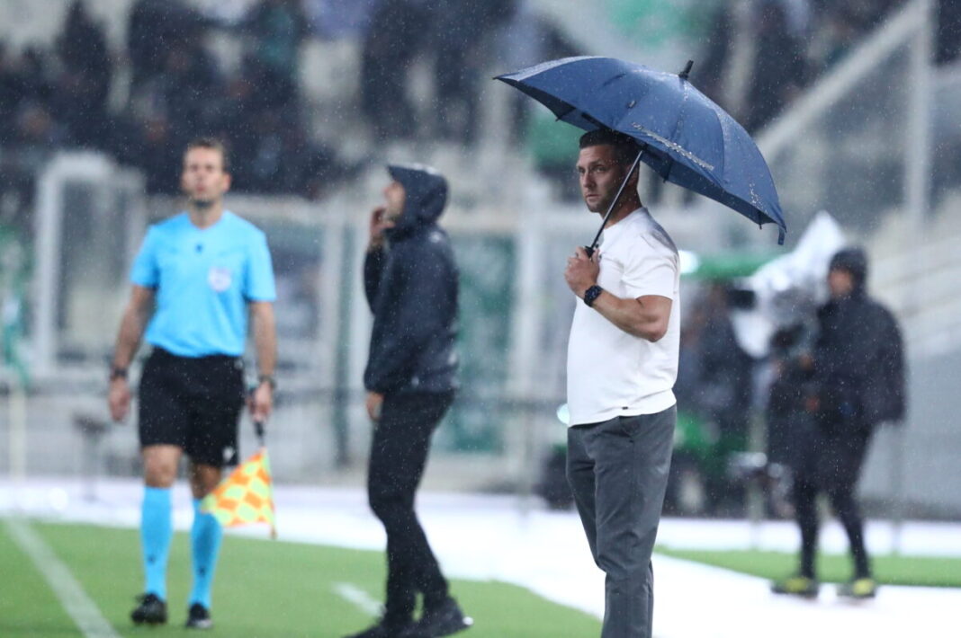 Ο Παναθηναϊκός αντιμετώπισε την Γκόου Αχέντ Ίγκλς στο ΟΑΚΑ για τη δεύτερη αγωνιστική της League Phase του Europa League, υπό βροχερές συνθήκες στο Μαρούσι. Ο προπονητής των Ολλανδών, Μέλβιν Μπόελ, τράβηξε την προσοχή καθώς εμφανίστηκε με ομπρέλα μπροστά από τον πάγκο του, εικόνα που γρήγορα έγινε viral. Παρά τη βροχή, ο Μπόελ παρέμεινε όρθιος δίπλα στον αγωνιστικό χώρο, δίνοντας οδηγίες στους παίκτες του, ενώ η αναμέτρηση διεξήχθη με αρκετά προβλήματα λόγω των καιρικών συνθηκών.