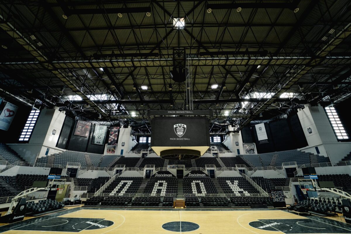 Μία φωτογραφία από το εσωτερικό του γηπέδου της Πυλαίας, δείχνει όλες τις αλλαγές που έγιναν στο “Παλατάκι”, με τον ΠΑΟΚ να ενημερώνει σχετικά, αναφέροντας τα εξής: “Επιβλητικό Cube στην οροφή του γηπέδου. Νέες θέσεις court περιμετρικά του αγωνιστικού χώρου. Νέοι πίνακες για το σκορ του αγώνα. Φωτισμός LED”.