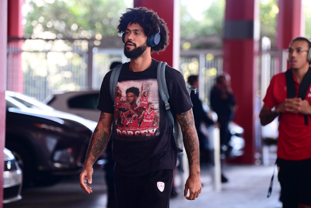 Ο Τάιλερ Ντόρσεϊ, ο ανερχόμενος αστέρας του Ολυμπιακού, κατέφθασε στο ΣΕΦ για το πρώτο ντέρμπι της σεζόν με τον Παναθηναϊκό, φορώντας ένα ξεχωριστό μπλουζάκι που απεικονίζει στιγμές από την καριέρα του με την ομάδα. Ο αγώνας, που διεξάγεται στο πλαίσιο της δεύτερης αγωνιστικής της GBL, βρίσκει και τις δύο ομάδες με σημαντικές απουσίες, όπως οι Εβάν Φουρνιέ και Τόμας Γουόκαπ για τον Ολυμπιακό και ο Κέντρικ Ναν για τον Παναθηναϊκό. Ο Ντόρσεϊ, που έχει βρει χώρο στο rotation του Γιώργου Μπαρτζώκα, αποτελεί βασικό πυλώνα για την ομάδα του, σκοράροντας εντυπωσιακά σε Euroleague και GBL.
