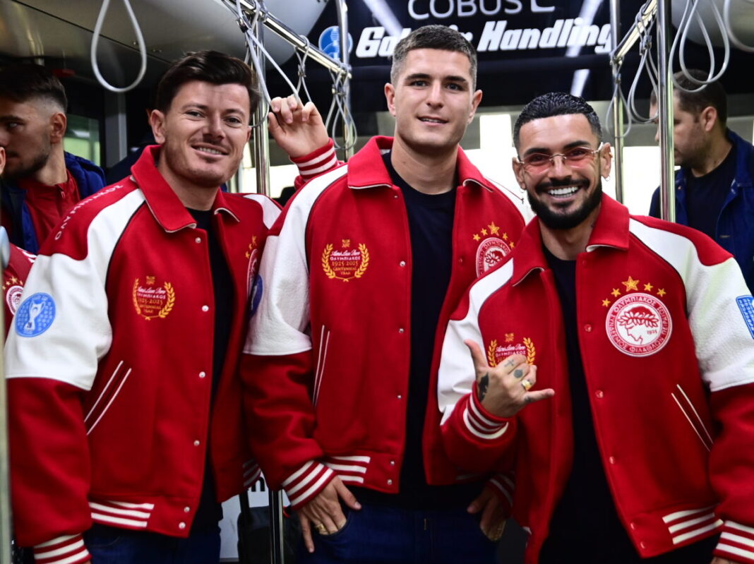 Καλό κλίμα στην αναχώρηση του Ολυμπιακού.