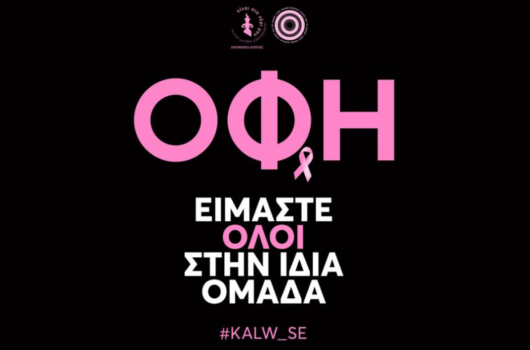 Ο ΟΦΗ ενώνει ξανά τις δυνάμεις του με την Περιφέρεια Κρήτης και τον Παγκρήτιο Σύλλογο κατά του Καρκίνου του Μαστού “Στόχος – Πρόληψη” και με το σύνθημα “Καλώ σε” στέλνουν από κοινού ηχηρό μήνυμα.
