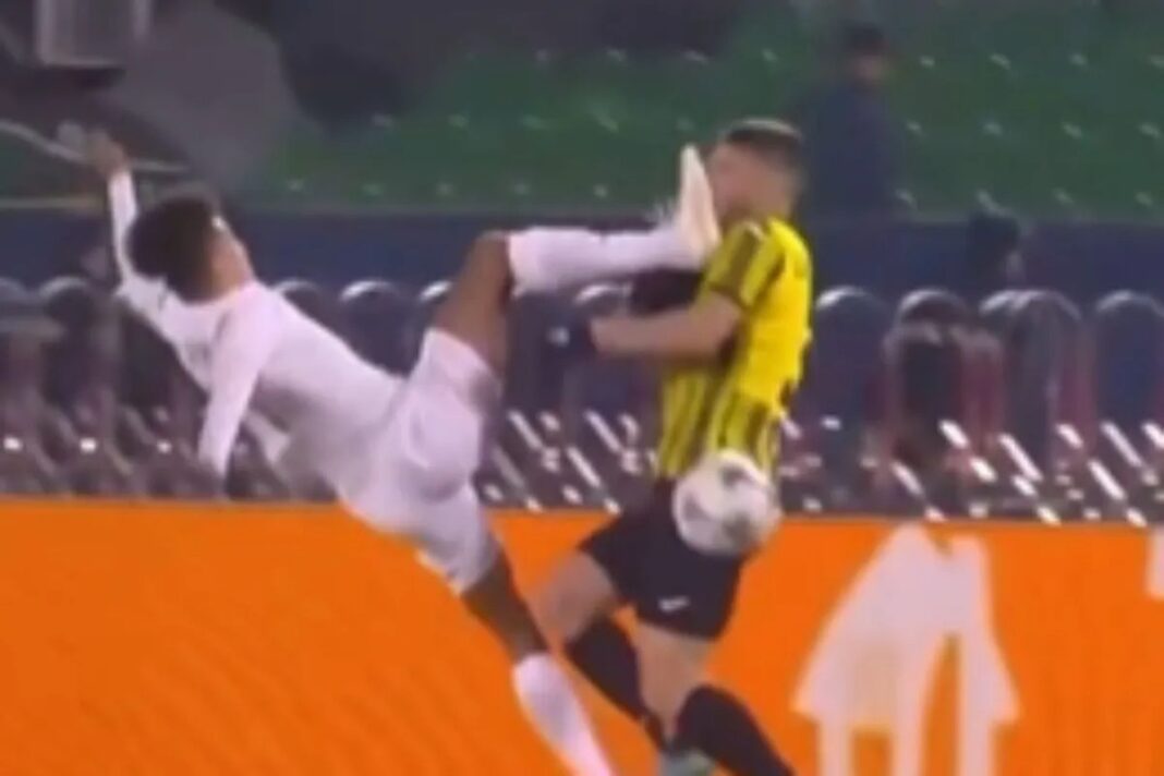 Ο Κορέιρα της Πάφου ύψωσε το πόδι του για να κάνει ένα κοντρόλ, αλλά ήταν πολύ κοντά στον Μάτα της Καϊράτ και λίγο έλειψε να τον “αποκεφαλίσει”, βρίσκοντας τον παίκτη των γηπεδούχων με τις τάπες στο πρόσωπο.