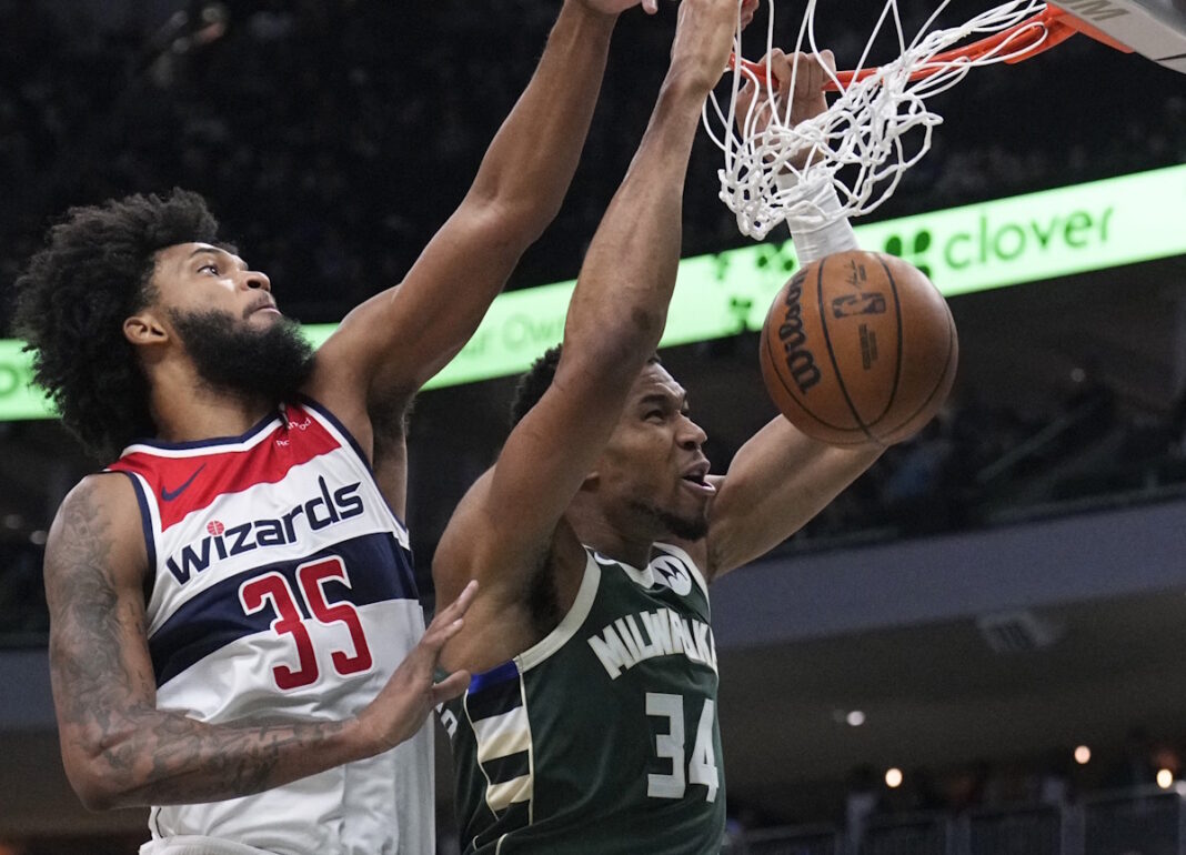Η άμυνα των Γουίζαρντς δεν είχε τρόπο για να σταματήσει τον Γιάννη Αντετοκούνμπο, ο οποίος είχε αρκετές εντυπωσιακές φάσεις στο αντίπαλο καλάθι.