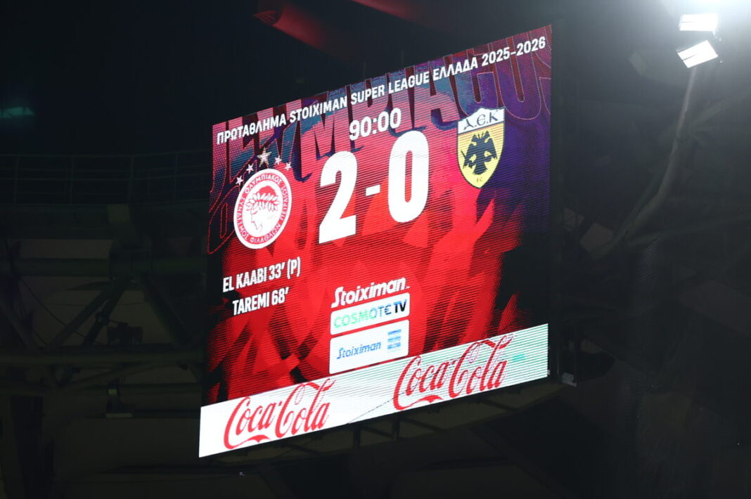 Ο Ολυμπιακός επικράτησε άνετα με 2-0 της ΑΕΚ στην OPAP Arena για την 8η αγωνιστική της Super League και ισοφάρισε το ρεκόρ του κόντρα στην Ένωση, αφού αυτή ήταν η έκτη διαδοχική του νίκη.