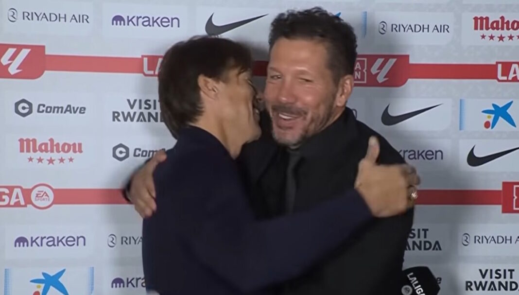 Η Ατλέτικο Μαδρίτης νίκησε τη Σεβίλλη με 3-0 στην 11η αγωνιστική της La Liga, και μετά τον αγώνα, οι προπονητές Ματίας Αλμέιδα και Ντιέγκο Σιμεόνε, πρώην συμπαίκτες στη Λάτσιο και την εθνική Αργεντινής, αντάλλαξαν θερμή αγκαλιά και έδωσαν κοινή συνέντευξη. Ο Αλμέιδα εξέφρασε τον σεβασμό του για τον Σιμεόνε, χαρακτηρίζοντάς τον ως σπάνιο καλό άνθρωπο στο ποδόσφαιρο, ενώ ο Σιμεόνε αναγνώρισε την επαγγελματική εξέλιξη του Αλμέιδα, θυμίζοντας τις συζητήσεις τους όταν ήταν νέοι. Οι δύο τους είχαν κατακτήσει το νταμπλ με τη Λάτσιο τη σεζόν 1999-2000, μοιράζοντας το ίδιο δωμάτιο στις αποστολές.