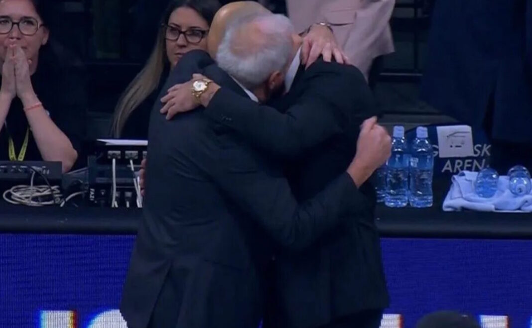 Αυτή μάλιστα ήταν η πρώτη τους αγκαλιά 15 χρόνια μετά την αποχώρηση του Σπανούλη από τον Παναθηναϊκό το καλοκαίρι του 2009, όταν και είχε προκαλέσει τεράστια ένταση στη σχέση του με τον «Ζοτς» ο οποίος βρισκόταν τότε στο τιμόνι των «πράσινων».