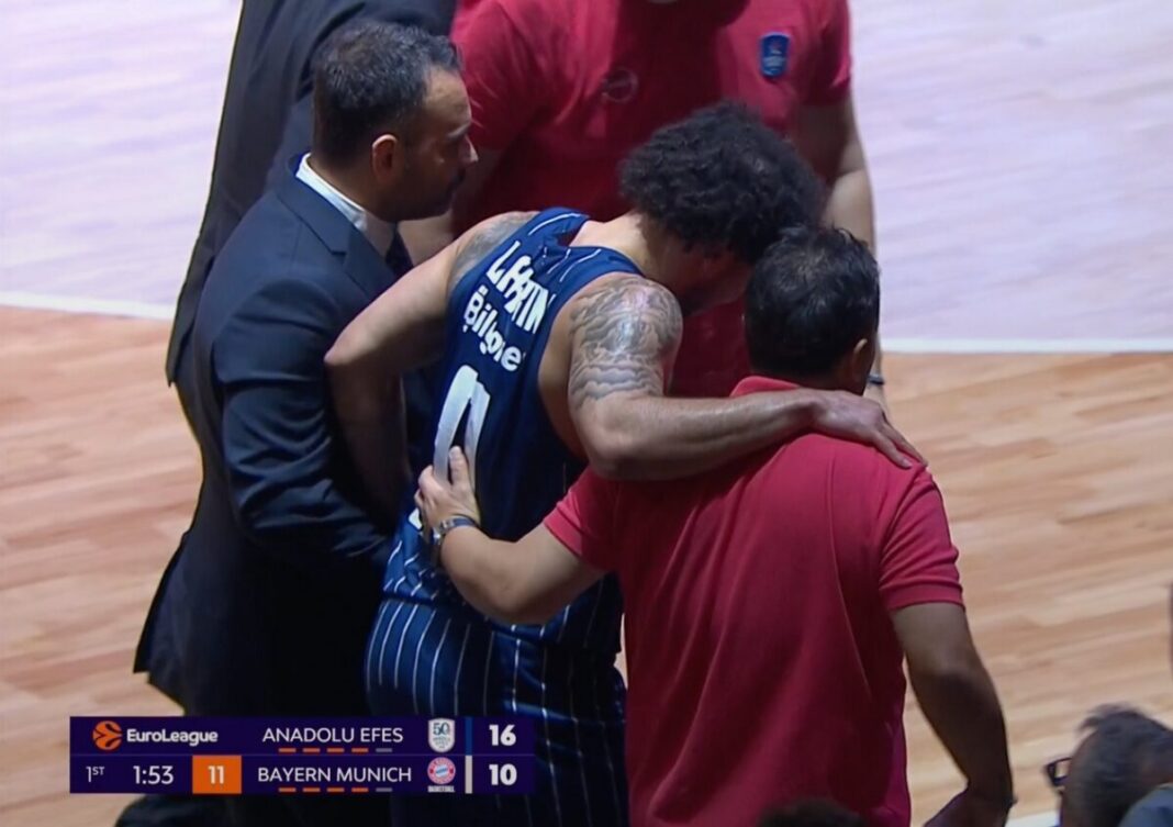 Ο Σέιν Λάρκιν τραυματίστηκε και αποχώρησε υποστηριζόμενος από το Εφές Αναντολού – Μπάγερν Μονάχου