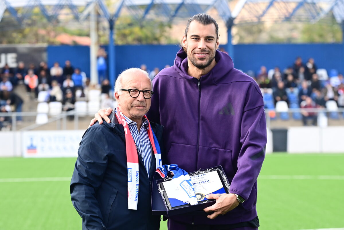 Μία ιδιαίτερη στιγμή για τον Γιώργο Πρίντεζη πριν την έναρξη του αγώνα Ελλας Σύρου – Ολυμπιακός για την 4η αγωνιστική του Κυπέλλου Ελλάδας Betsson.