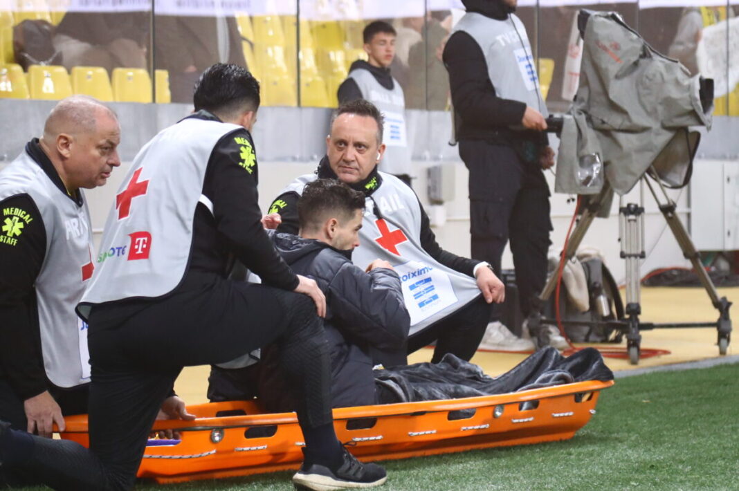 Στη συνέχεια χρειάστηκε μάλιστα και φορείο για να πάει στα αποδυτήρια, με τους ανθρώπους της ΑΕΚ να περιμένουν πλέον τις εξετάσεις του, για να διαπιστωθεί το μέγεθος του τραυματισμού.