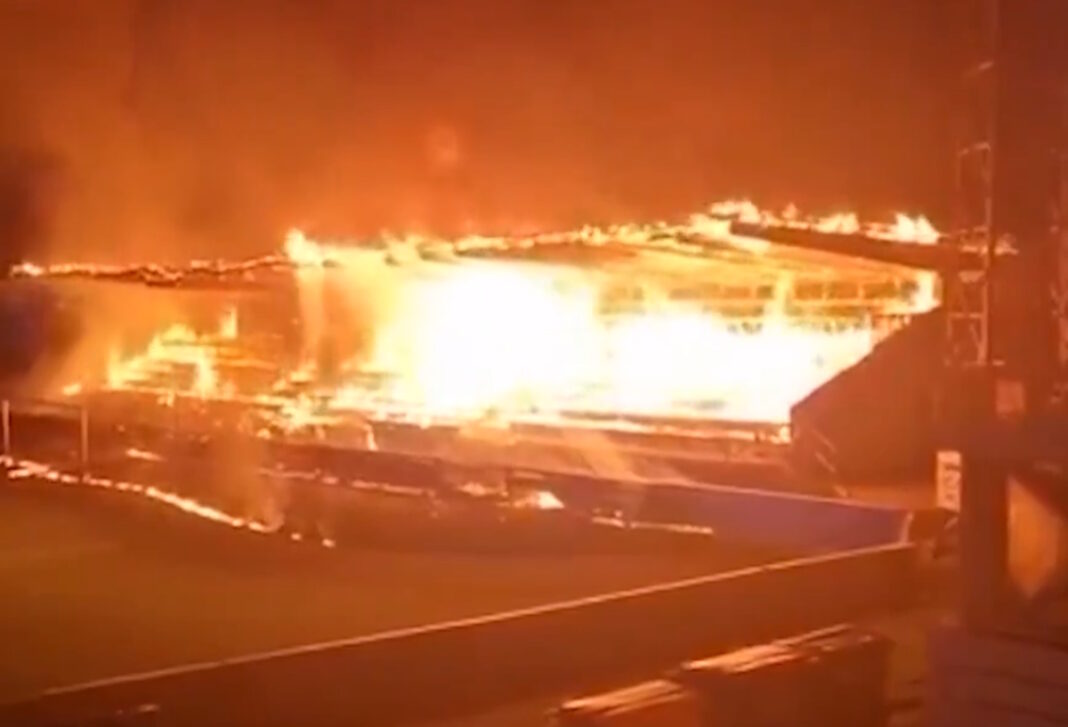 Η μεγάλη ξύλινη κερκίδα του γηπέδου λαμπάδιασε και έγινε κάρβουνο!