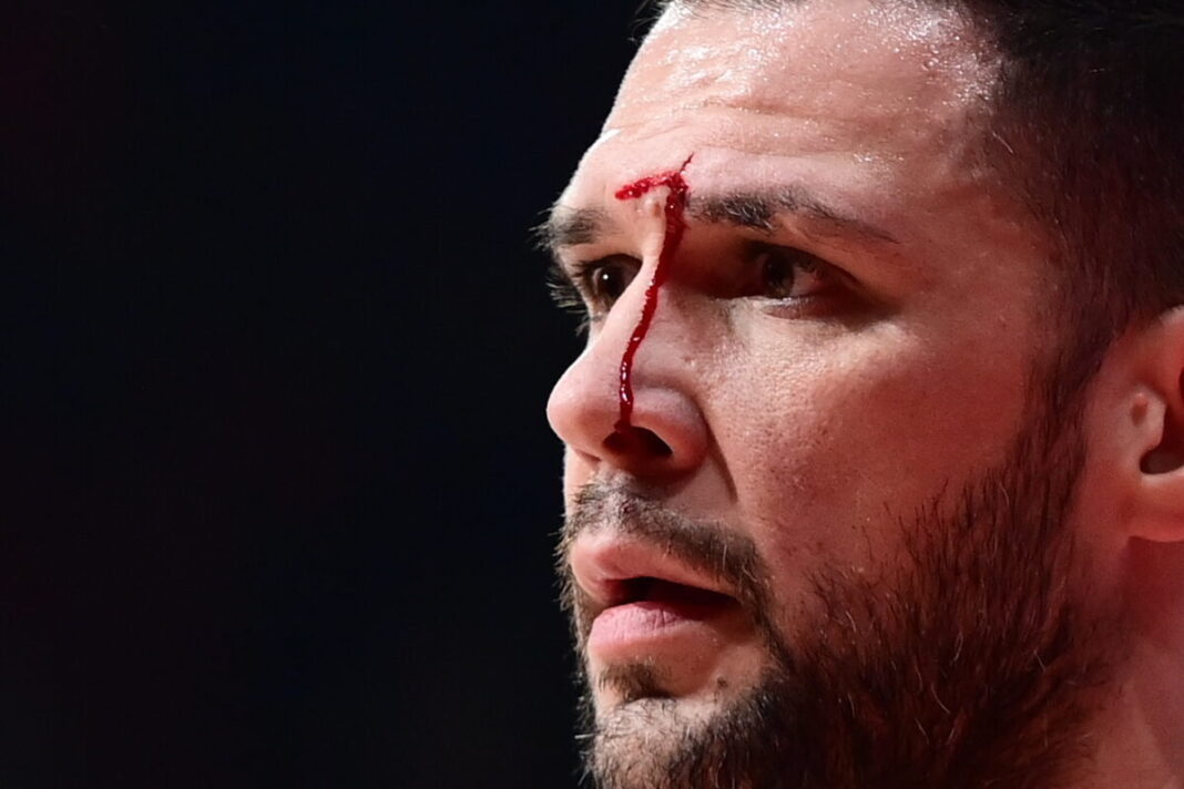 Σοβαρός τραυματισμός του Παπανικολάου από αντιαθλητικό φάουλ του Βατιέ, που τον άφησε με αίματα στο πρόσωπο κατά τη διάρκεια του αγώνα με τη Βιλερμπάν