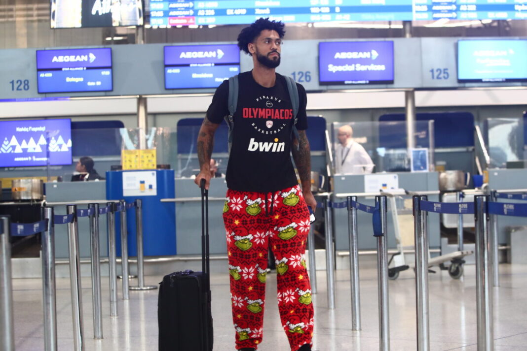 Με ένα άκρως… γιορτινό παντελόνι εμφανίστηκε ο Τάιλερ Ντόρσεϊ στο αεροδρόμιο, ενόψει του ταξιδιού του Ολυμπιακού στην Μπολόνια, για το ματς με την Βίρτους.