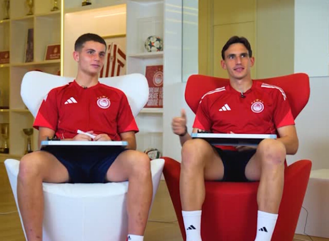 Οι δύο παίκτες των ερυθρολεύκων έπαιξαν το παιχνίδι, προσφέροντας άφθονο γέλιο με τα πειράγματα που έκαναν ο ένας στον άλλον. Μουζακίτης και Μπότης αλλού συμφώνησαν και σε άλλες ερωτήσεις απλά… στήριξαν τον εαυτό τους.