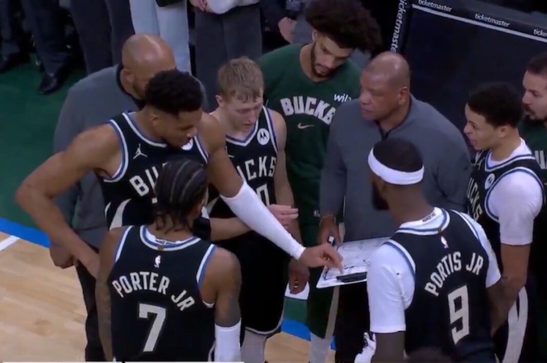 Στη συγκεκριμένη αναμέτρηση, όμως, έκανε και κάτι ακόμα. Ο “Greek freak” ήταν αυτός που σχεδίασε την τελευταία επίθεση των Μπακς! Ο Γιάννης Αντετοκούνμπο φαίνεται να δίνει ξεκάθαρες οδηγίες στον Κέβιν Πόρτερ Τζούνιορ, εξηγώντας πού ακριβώς θέλει την μπάλα και πώς πρέπει να εξελιχθεί η τελευταία επίθεση.
