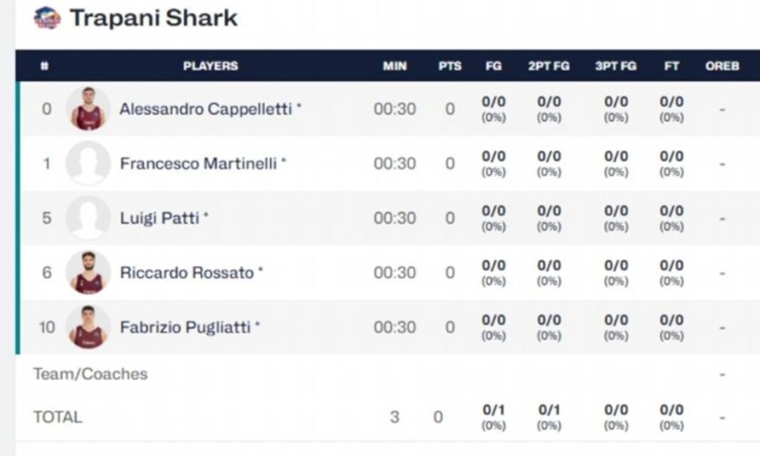 Συγκεκριμένα, τρία λεπτά πριν το φινάλε της πρώτης περιόδου και με τη Χάποελ Χολόν να προηγείται με σκορ 38-5, η Τραπάνι έμεινε με μόλις έναν παίκτη ενεργό (!), με αποτέλεσμα οι διαιτητές να σφυρίξουν τη λήξη της αναμέτρησης.