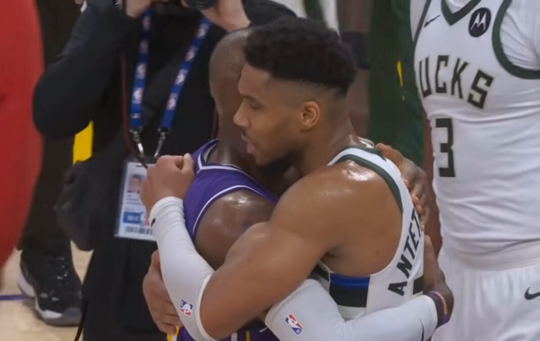 Αμέσως μετά τη λήξη του αγώνα, ο “σταρ” των Λέικερς πλησίασε τον “Greek freak” και του έδωσε μια μεγάλη αγκαλιά, δίνοντάς του ένα “respect” για την εμφάνιση που είχε.