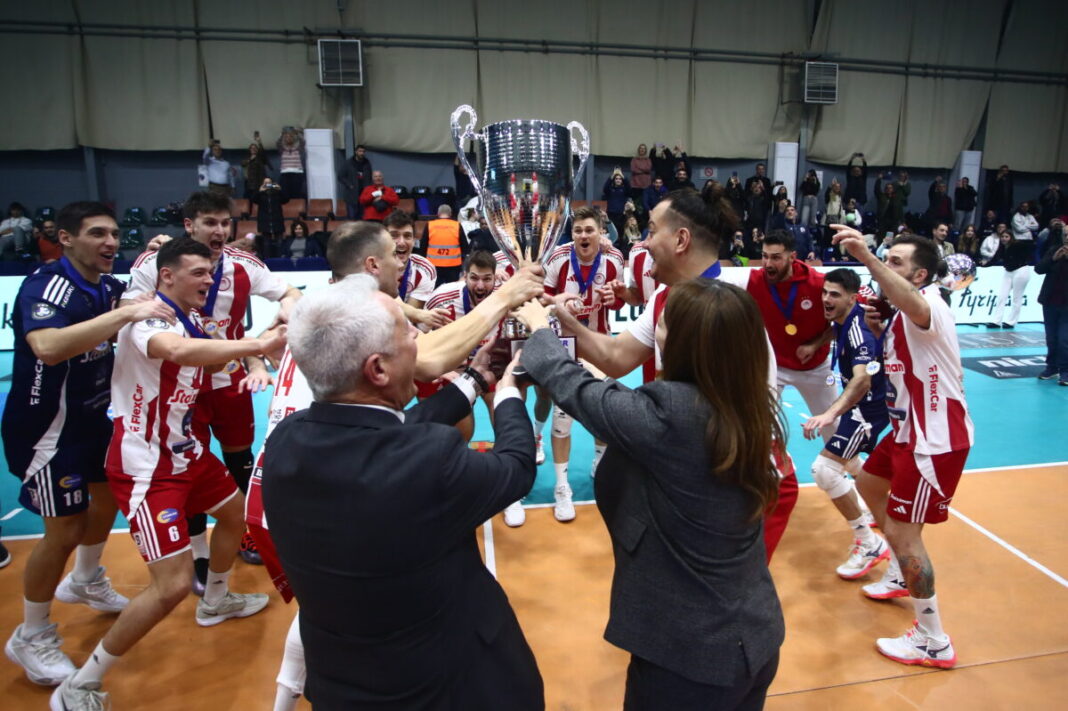 Ο Ολυμπιακός κατάφερε να κερδίσει τον Παναθηναϊκό 3-2 στον τελικό του Super Cup του βόλεϊ ανδρών που έγινε στο κλειστό του Μαρκόπουλου και οι παίκτες του το πανηγύρισαν έξαλλα.