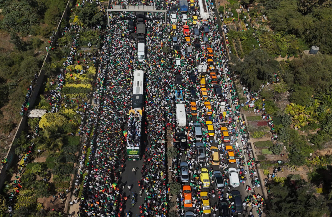 Σκαρφαλωμένοι πάνω σε ένα ανοιχτό λεωφορείο, οι ήρωες του Ραμπάτ κρατούσαν ψηλά το τρόπαιο και τη σημαία της Σενεγάλης, με τον κόσμο να τους αποθεώνει.