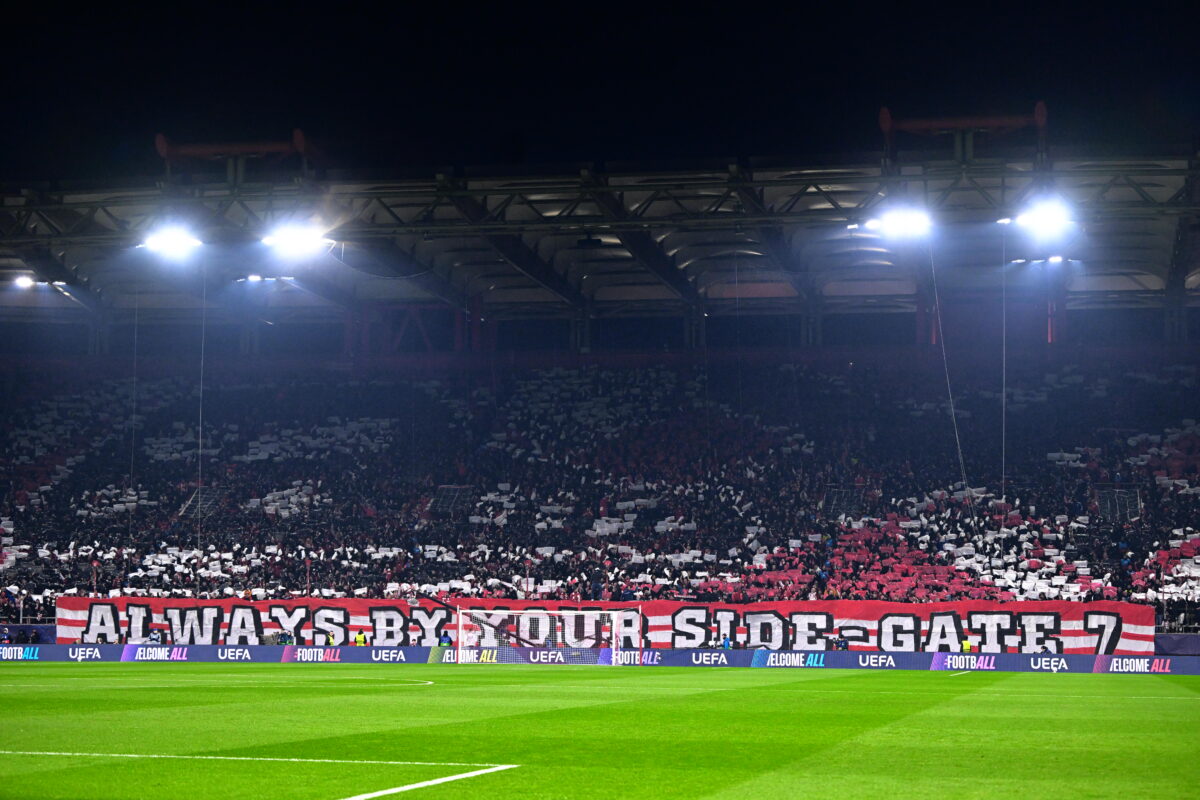 «Πάντα στο πλευρό σου» το μήνυμα των φιλάθλων του Ολυμπιακού στην ομάδα του Μενττιλίμπαρ, λίγο πριν ξεκινήσει ο «τελικός» κόντρα στην Μπάγερ Λεβερκούζεν.