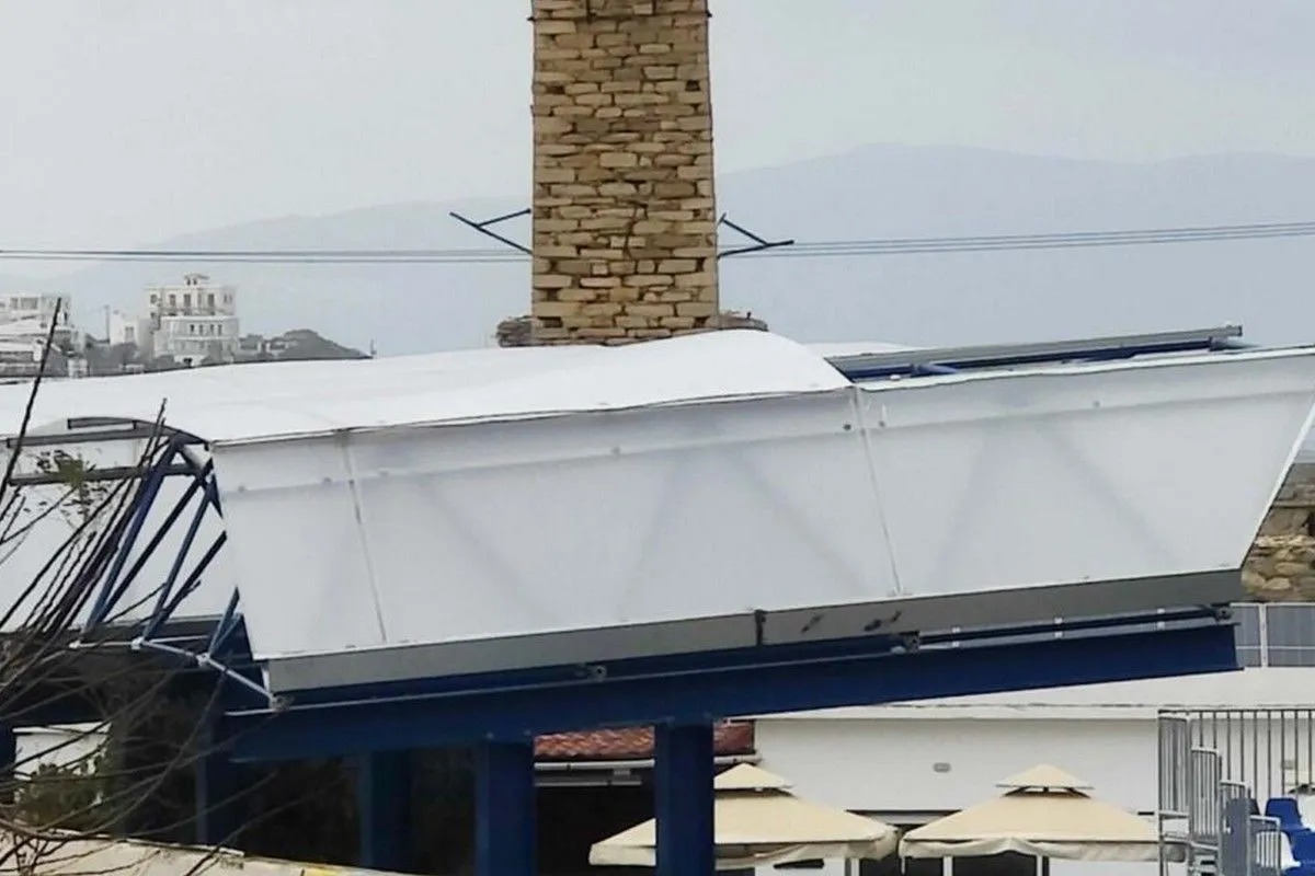 Τα έντονα καιρικά φαινόμενα που επικρατούν στη Σύρο προκάλεσαν ένα σημαντικό πρόβλημα στο δημοτικό γήπεδο Ερμούπολης, με τον δυνατό αέρα να προκαλεί ζημιές στο στέγαστρό του.