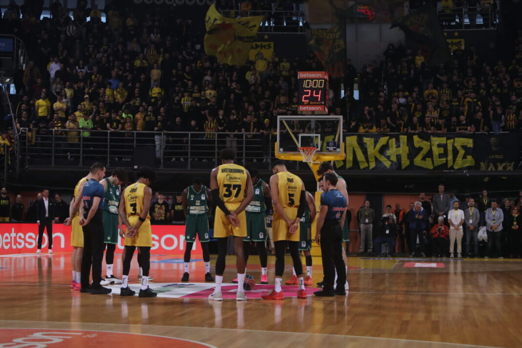 Άρης Betsson και Παναθηναϊκός τίμησαν τον Άλκη Καμπανό με ενός λεπτού σιγή στο Αλεξάνδρειο, 4 χρόνια μετά τη δολοφονία του, συγκινώντας το κοινό.