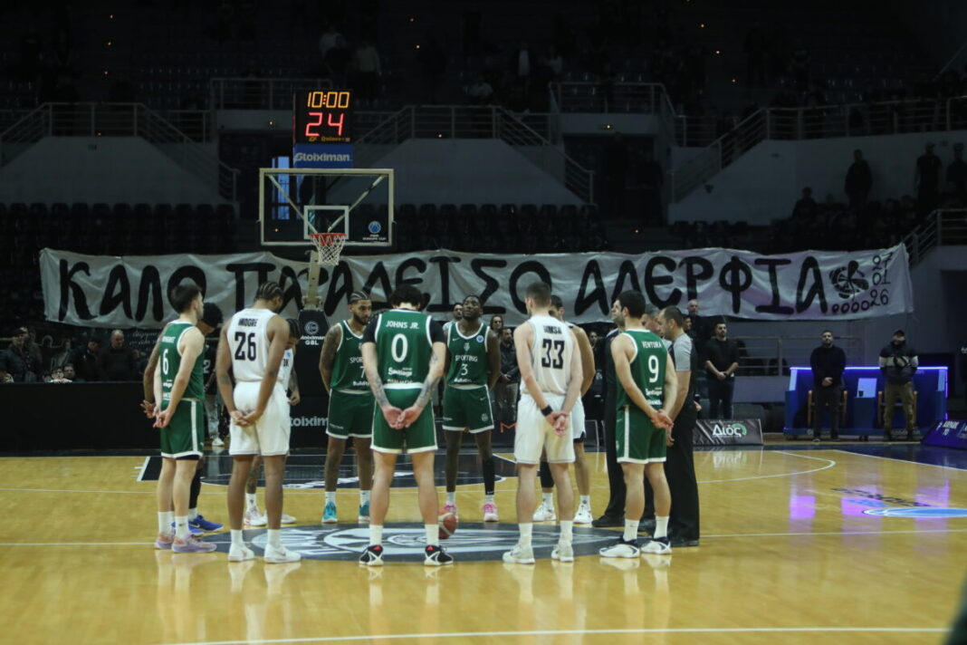 Ο ΠΑΟΚ φιλοξενεί τη Σπόρτινγκ στην Πυλαία, για την 5η αγωνιστική της δεύτερης φάσης του FIBA Europe Cup. Οι παίκτες αμφότερων των ομάδων πριν την έναρξη της αναμέτρησης, τίμησαν τη μνήμη των οπαδών του “δικεφάλου του Βορρά” που έχασαν τη ζωή τους στο τραγικό δυστύχημα στη Ρουμανία.
