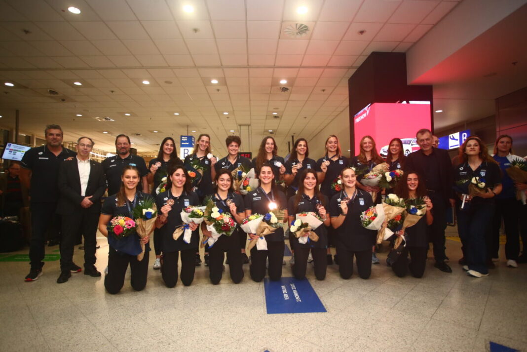 Η Εθνική πόλο γυναικών επέστρεψε στην Ελλάδα μετά την επιτυχία της κατάκτησης της τρίτης θέσης στο Ευρωπαϊκό πρωτάθλημα της Πορτογαλίας.