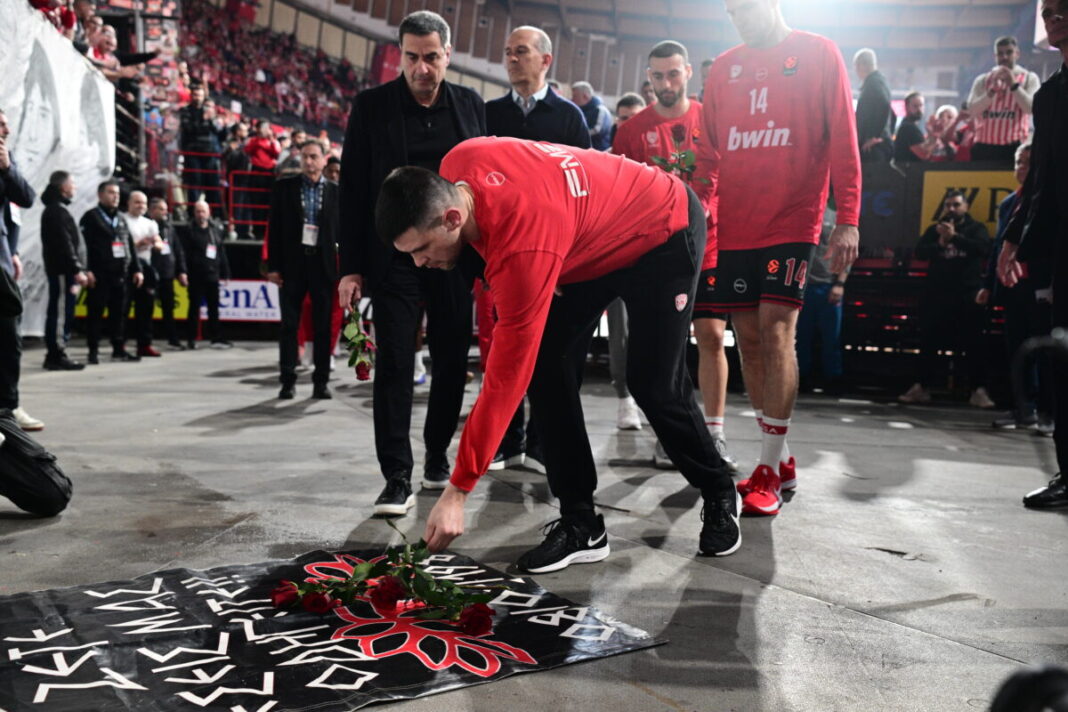 Οι αθλητές του Ολυμπιακού απέτισαν φόρο τιμής στα θύματα της τραγωδίας της θύρας 7 στο ΣΕΦ