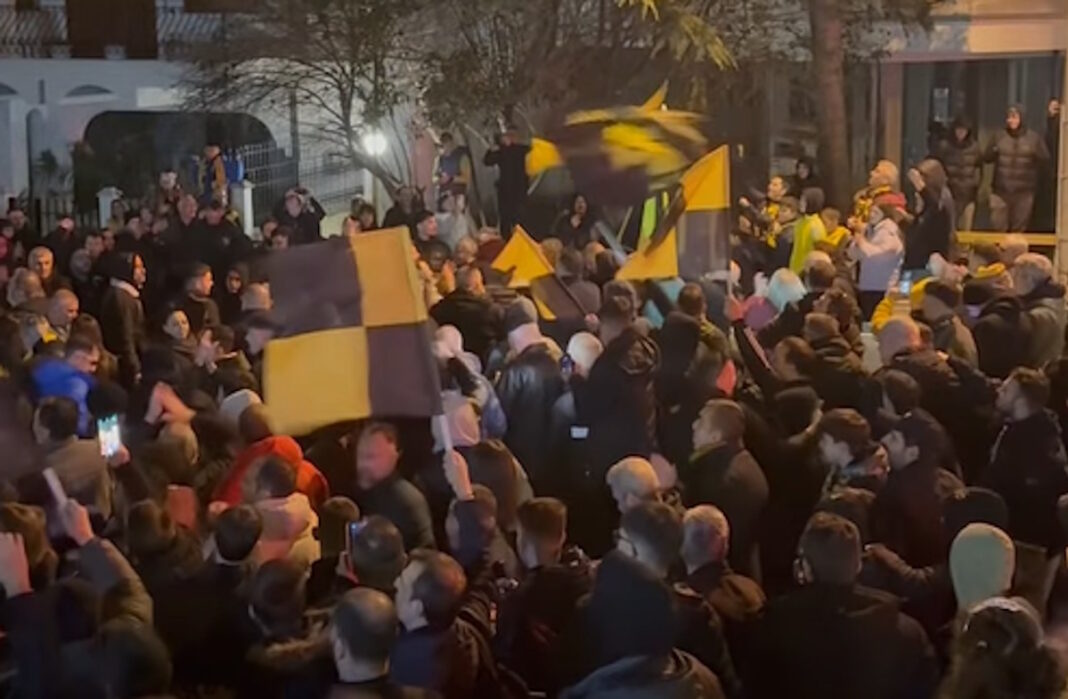 Η ΑΕΚ έφτασε στο ξενοδοχείο όπου κατέλυσε η ομάδα λίγο μετά τις 19:30 του Σαββάτου, με εκατοντάδες φίλους της ομάδας να περιμένουν τους “κιτρινόμαυρους”.
