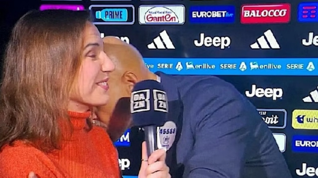 Ο Σπαλέτι προχώρησε σε μία πρωτοφανή κίνηση για να δείξει τη απόγνωσή του για ένα μαρκάρισμα πάνω στο Καμπάλ της Γιουβέντους μέσα στην περιοχή. Ο Ιταλός φίλησε τον ώμο της ρεπόρτερ για να υποστηρίξει την άποψή του, με αποτέλεσμα να γίνει viral.