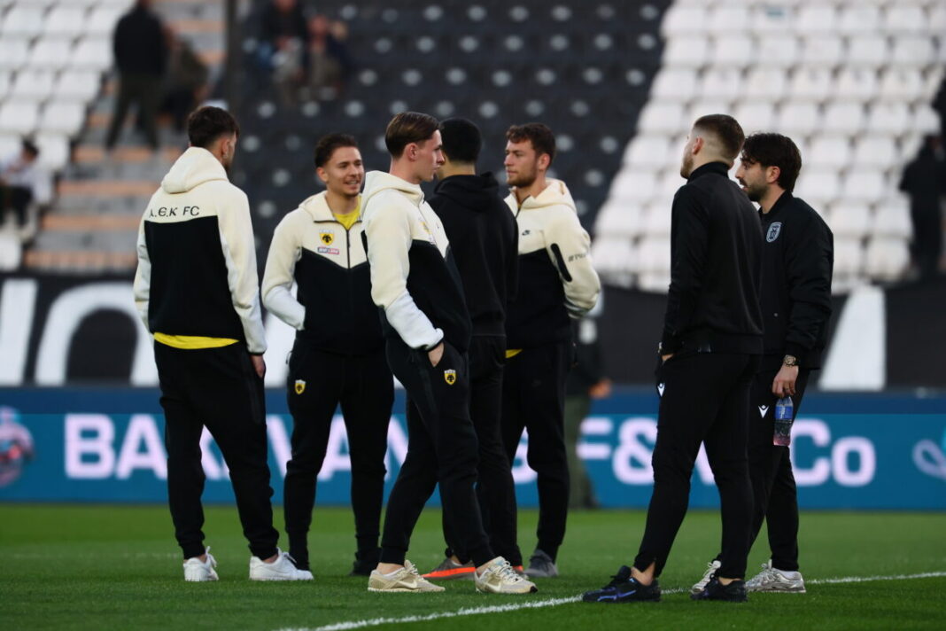 H ενδεκάδα της ΑΕΚ: Στρακόσα, Ρότα, Ρέλβας, Μουκουντί, Πήλιος, Πινέδα, Μαρίν, Κοϊτά, Γκατσίνοβιτς, Βάργκα, Γιόβιτς.