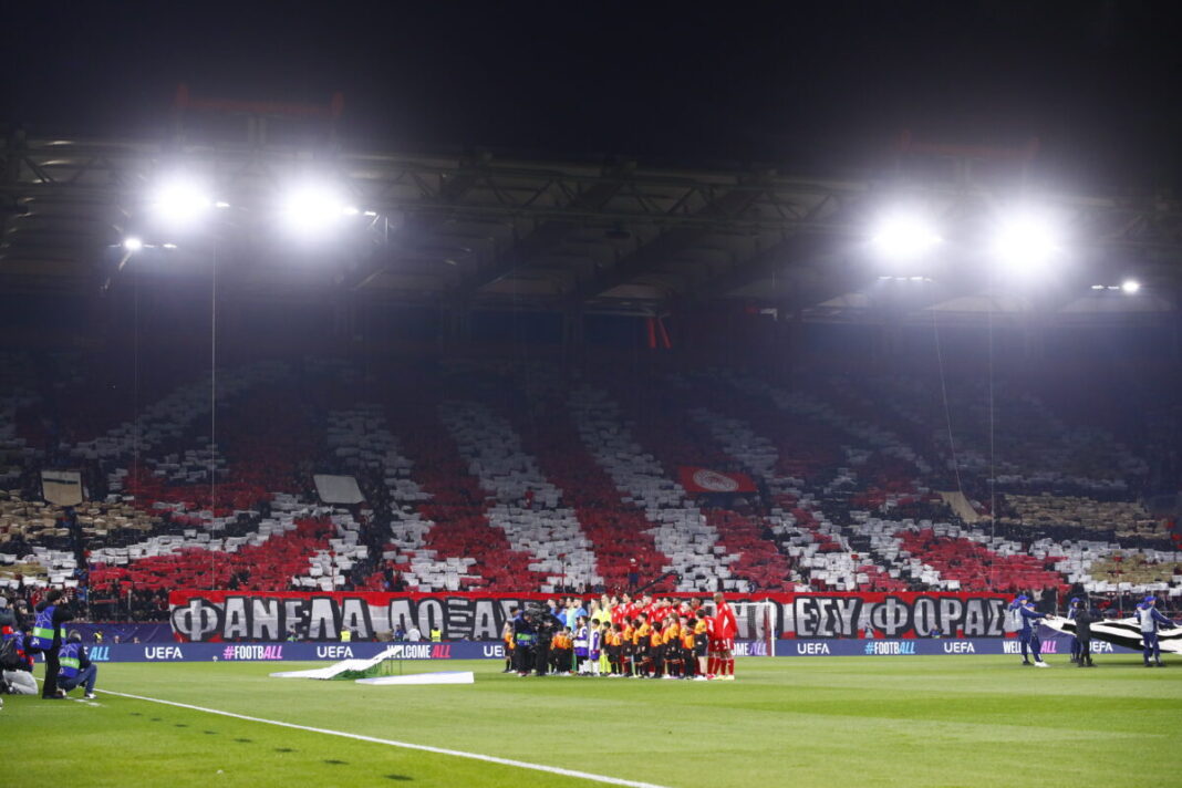 Οι φίλοι του Ολυμπιακού εξαφάνισαν τα εισιτήρια του αγώνα, με τους Πειραιώτες να ανακοινώνουν sold out. Λίγο πριν τη σέντρα του αγώνα, το “Καραϊσκάκης” απέκτησε μια εντυπωσιακή εικόνα από το κορεό που έκαναν οι ερυθρόλευκοι οπαδοί.
